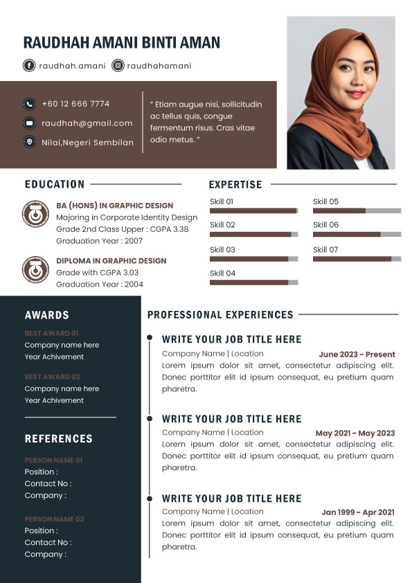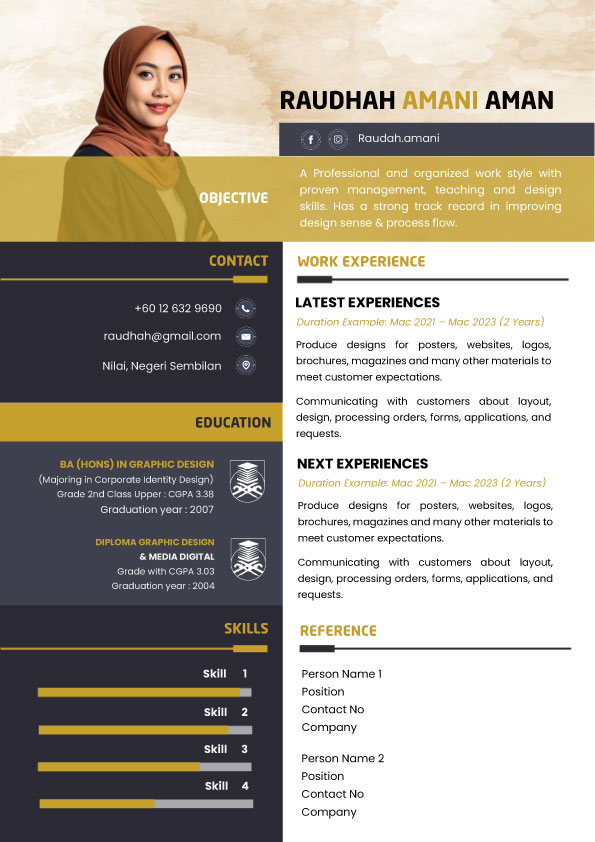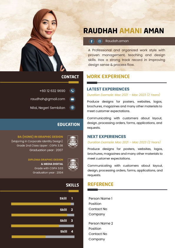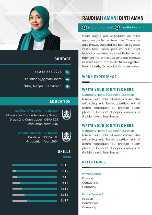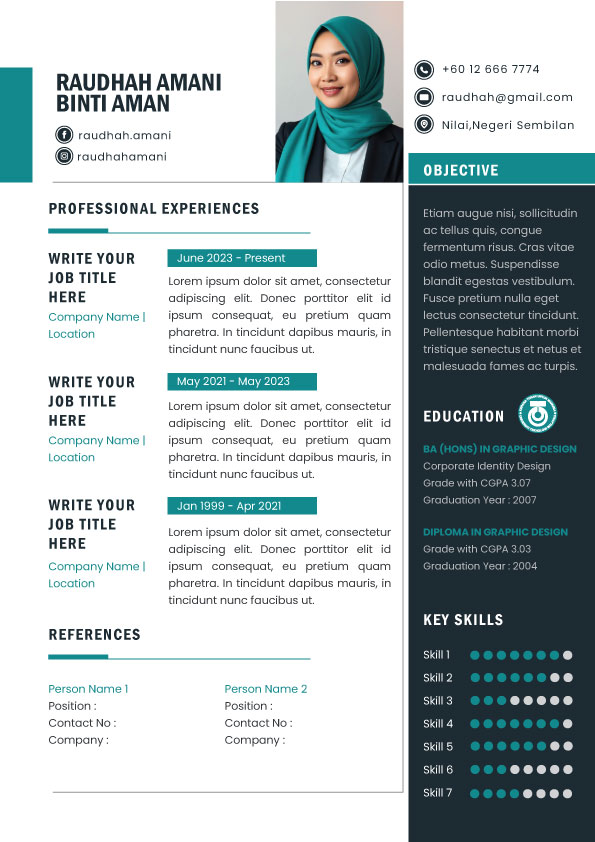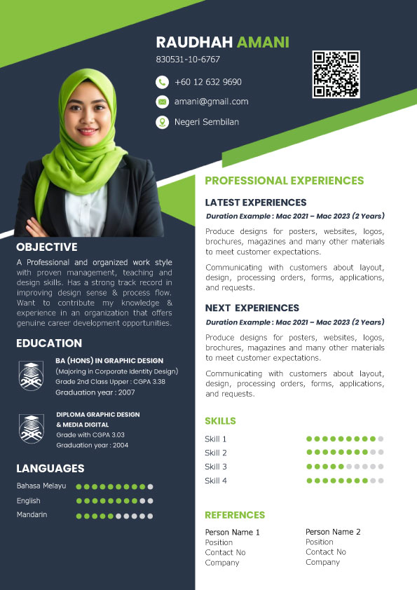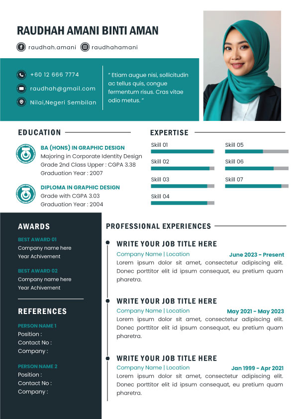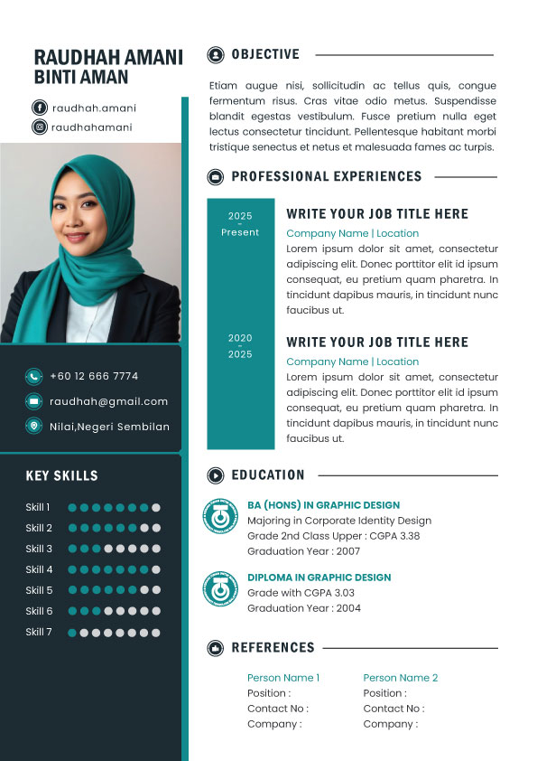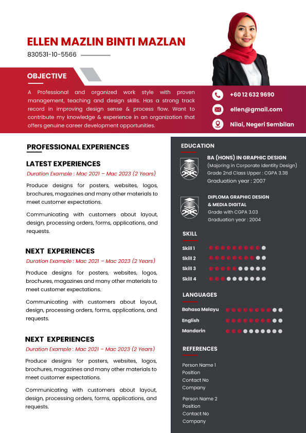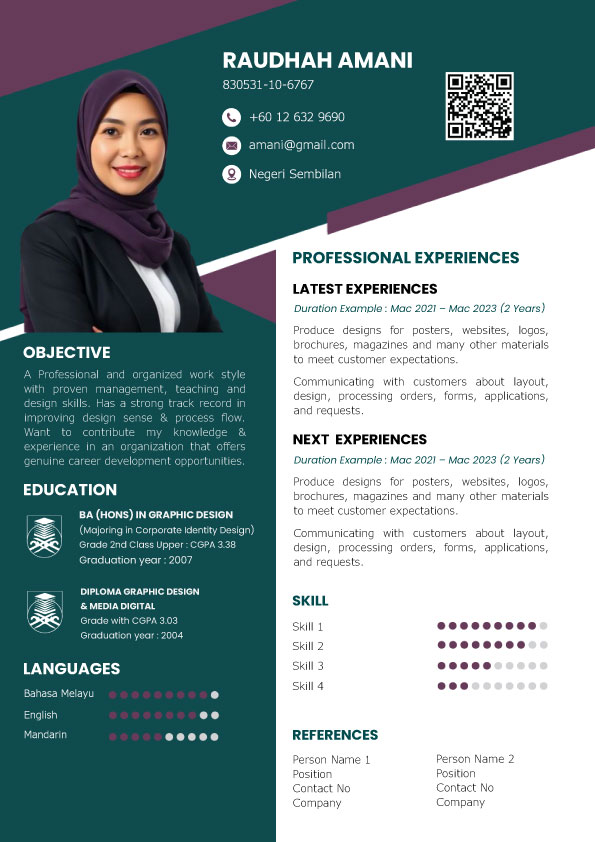 Sesuai untuk pelbagai bidang kerjaya dengan susun atur yang kemas dan mudah dibaca.