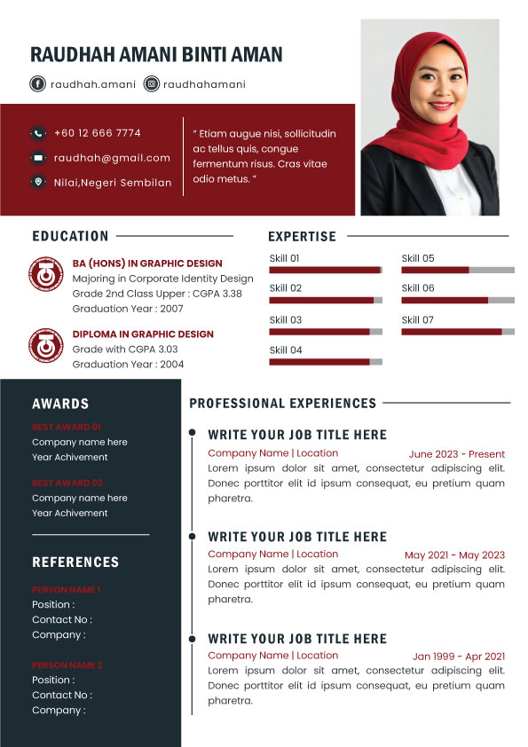 Dengan template ini, anda boleh siapkan resume profesional dalam masa kurang daripada 1 hari — 100% PERCUMA!